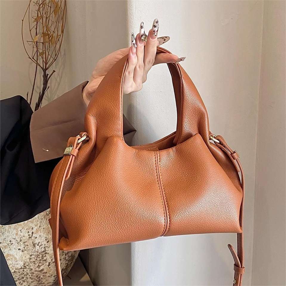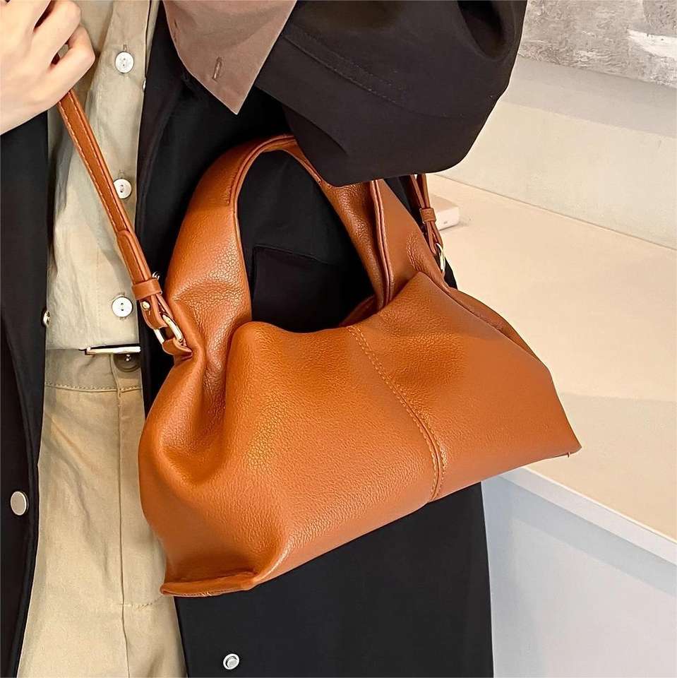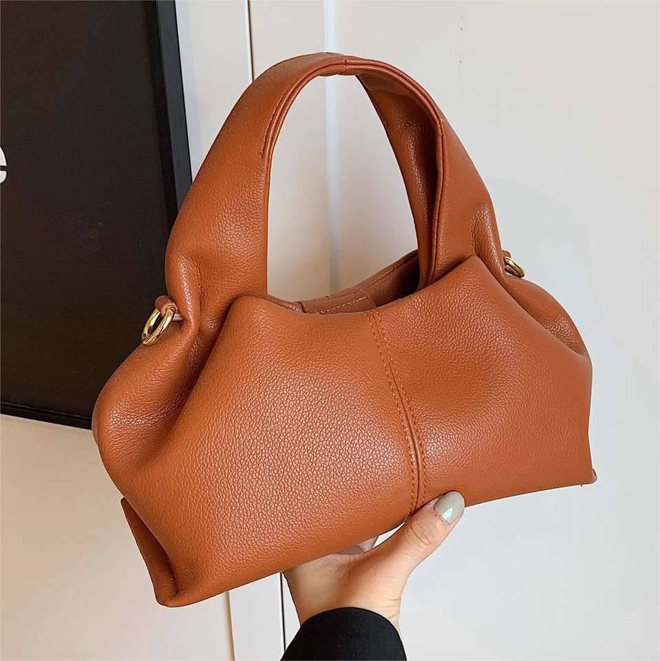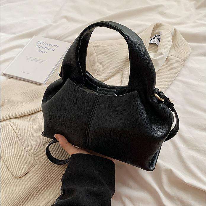 THK กระเป๋ายับย้อนยุคสีทึบกระเป๋า PU สะพายข้างกระเป๋าถือขนาดเล็กสวยงาม