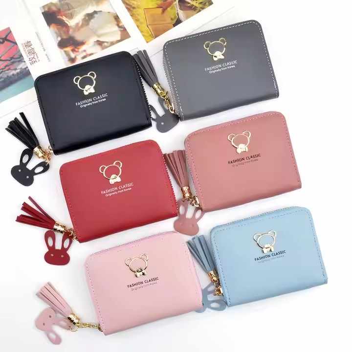 กระเป๋าสตางค์ผู้หญิง THK0075 หนัง PU แบบมีพู่ ซิป กระเป๋าใส่เหรียญ พกพาสะดวก สไตล์วินเทจ ผิวด้าน กระเป๋าคลัทช์สั้น ใส่บัตรได้