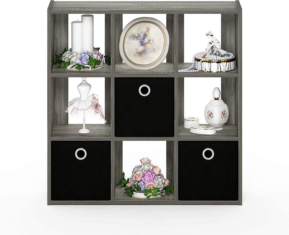 Thlc-0004ห้องนั่งเล่นโมเดิร์นเรียบง่าย9-Cube ออแกไนเซอร์พร้อมถังขยะ, ฝรั่งเศสโอ๊คสีเทา/ดำ