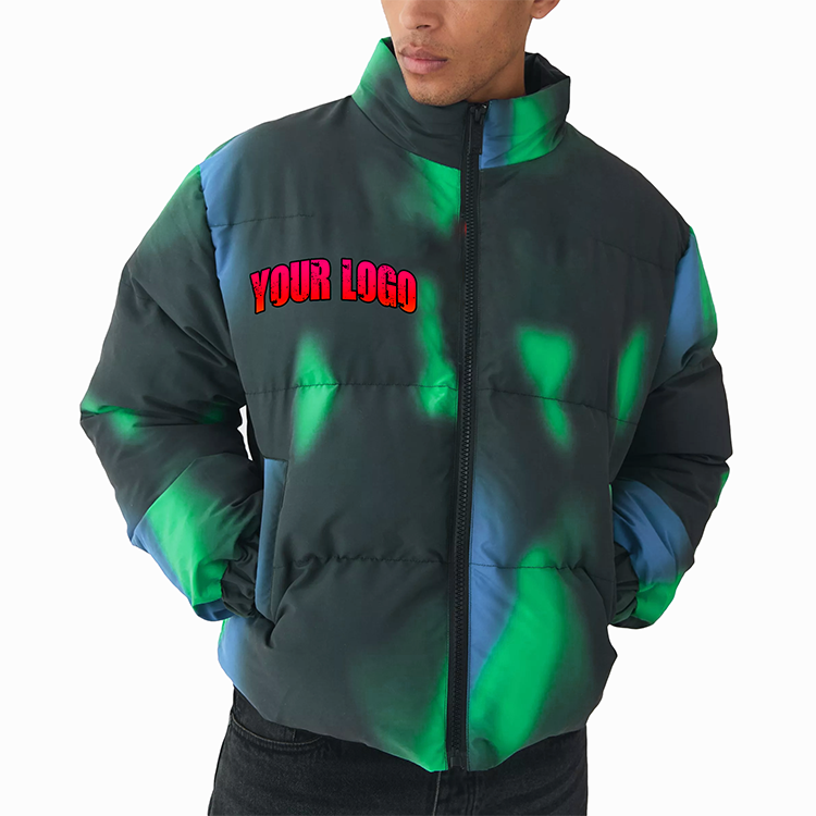 เสื้อแจ็คเก็ตพัฟเฟอร์ผู้ชายแบบมีฮู้ด ย้อมสีแบบ TIE DYE พับเก็บได้ น้ำหนักเบา กันน้ำ เหมาะสำหรับกิจกรรมกลางแจ้งในฤดูหนาว เดินทาง เล่นสกี และกิจกรรมบนหิมะ
