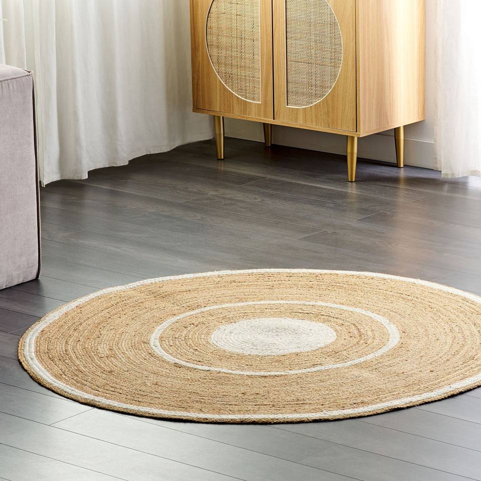 พรมปอกระเจาธรรมชาติ Tienphong พรมพื้นที่หัตถกรรมเส้นสีขาวสำหรับตกแต่งบ้านโรงแรมและวิลล่าสำหรับการสวดมนต์การเดินทางการตั้งแคมป์