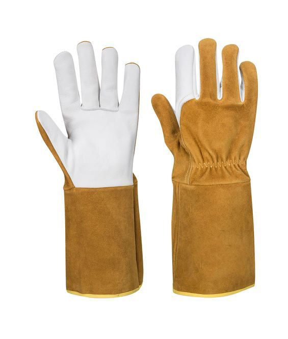 ถุงมือเชื่อม TIG แบบแอคทีฟเซฟตี้ ขนาด 16 นิ้ว หนังแพะ ข้อมือหนังวัวเสริมแรง กันลื่น ปราศจากซิลิโคน ปราศจากแป้ง