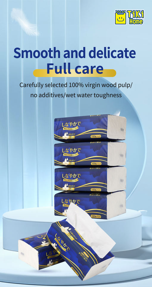 กระดาษเช็ดหน้า TIKIHOME 4 ชั้น พิมพ์ลายซิลค์สกรีน เยื่อไม้บริสุทธิ์ 100% หนาพิเศษ ใช้ได้ทั้งแบบเปียกและแบบแห้ง 100 แผ่น 155x180 มม. สำหรับใช้ในบ้าน