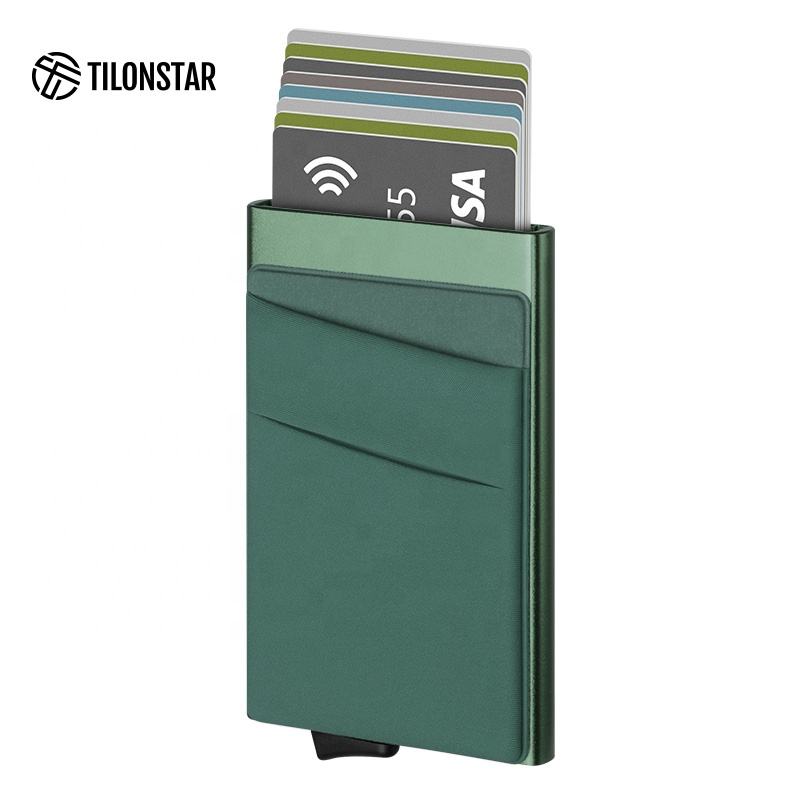 กล่องใส่บัตรเครดิต TILONSTAR TVC104 ป้องกันการโจรกรรม ดีไซน์บางเฉียบ วัสดุโลหะ ป้องกัน RFID พร้อมระบบดึงบัตรอัตโนมัติ กระเป๋าสตางค์อะลูมิเนียม