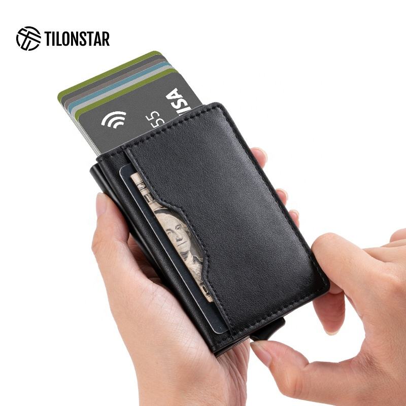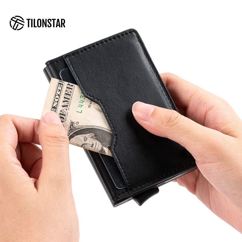Tilonstar ที่ใส่บัตรหนังสำหรับผู้หญิงกระเป๋าสตางค์แบบป๊อปอัพอะลูมิเนียม RFID สำหรับธุรกิจ TVC109