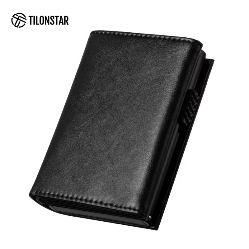 TVC302W tilonstar กระเป๋าสตางค์แบบป๊อปอัพที่ใส่บัตรเครดิตทำจากหนัง RFID โลโก้ตามสั่ง