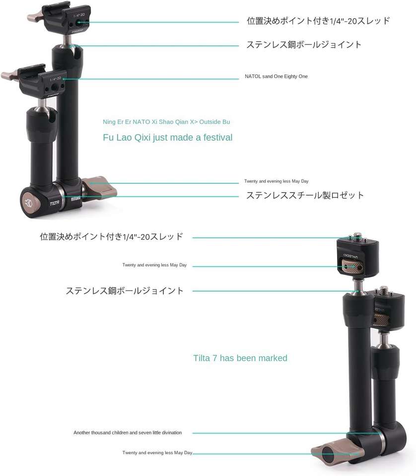 TILTA Pro แขนประกบแบบปรับได้, ข้อต่อลูกที่หนีบได้ทำจากอลูมิเนียมอัลลอยด์คู่รองรับน้ำหนักได้สูงสุดถึง11ปอนด์