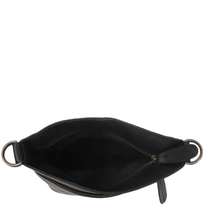 กระเป๋าสะพายหนังแท้สีดำเหนือกาลเวลาพร้อมสายสะพายไหล่ปรับได้และกระเป๋าซิปสามกระเป๋าที่ออกแบบมาสำหรับผู้ชายและผู้หญิง