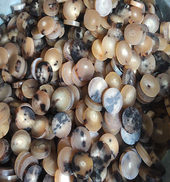 กระดุมเขาสัตว์อินเดียทรงต่างๆ งานฝีมือคุณภาพดีที่สุด เป็นมิตรกับสิ่งแวดล้อม ทำด้วยมือ ขนาดหนา 5 มม.-5.50 มม. แบบธรรมชาติ สำหรับงาน DIY
