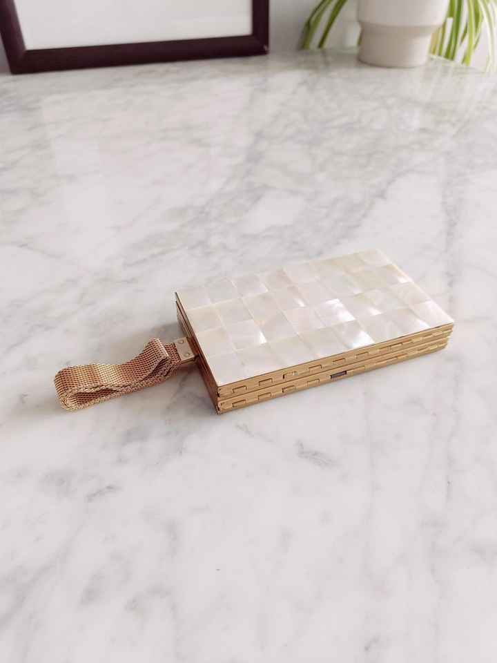 งานฝีมือเหนือกาลเวลา กระเป๋าคลัทช์ทำมือรักษ์โลกทันสมัย ด้ามจับทองเหลืองหรูหรา ประดับมุกเปลือกหอยธรรมชาติ ของขวัญตกแต่งงานแต่งงาน