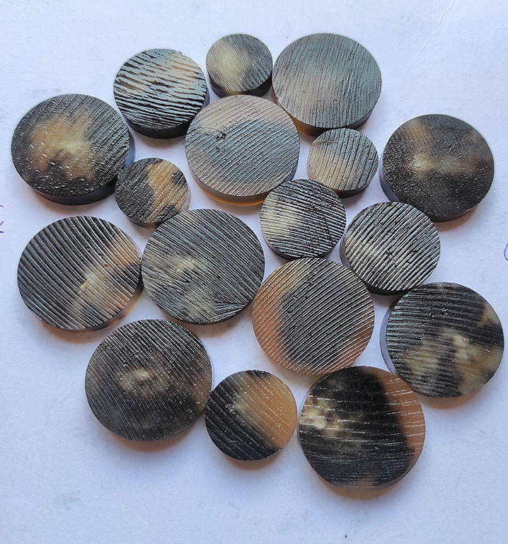 กระดุมติดเสื้อแบบแบนลายเลื่อม ทำจากเขาควายแท้ของอินเดีย ยี่ห้อ TIMELESS CRAFT สีเขาควายธรรมชาติ