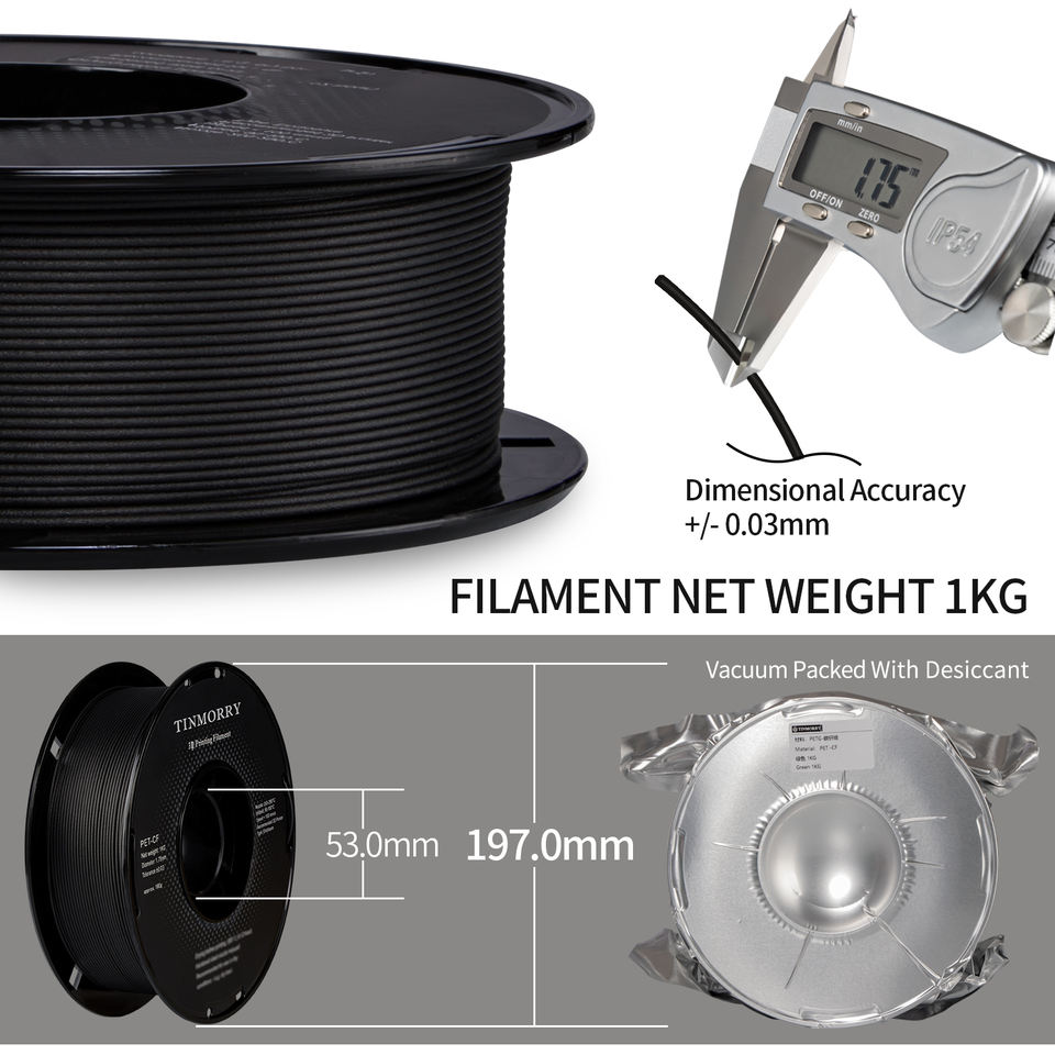 เส้นใยพิมพ์ 3 มิติ TINMORRY คาร์บอนไฟเบอร์ ขนาด 1.75 มม. วัสดุ ASA ABS PLA PETG PC+ PA สีดำ เส้นใย ASA CF คาร์บอนไฟเบอร์