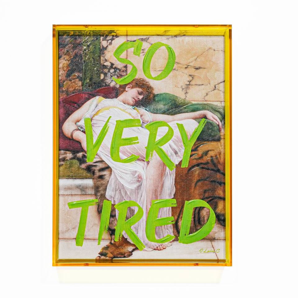 ภาพวาดบนผืนผ้าใบพร้อมกรอบอะคริลิคสีเหลือง ขนาด 30x40 ซม. หนา 5 ซม.