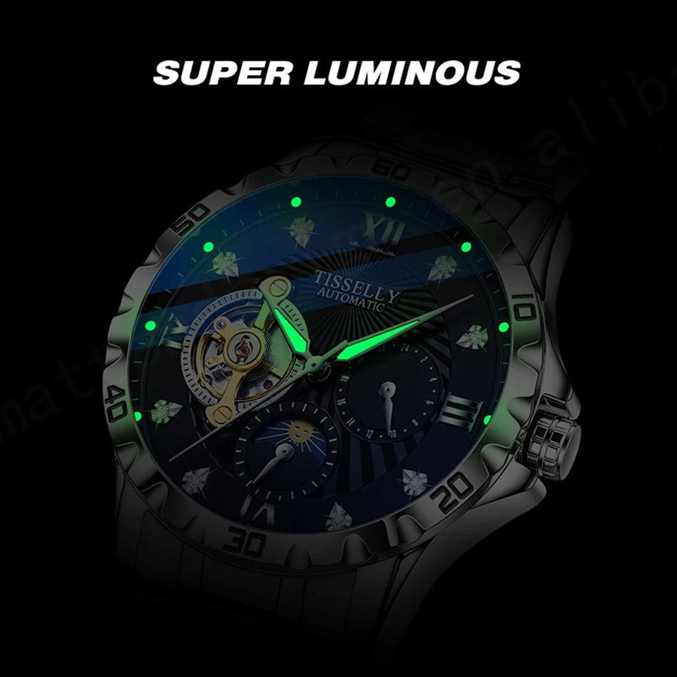 ลักษณะ:โครโนกราฟ, วัน / วัน, กันน้ำ, กันน้ำ, เรืองแสง, สัปดาห์แสดง, มือส่องสว่าง, กลวงออก