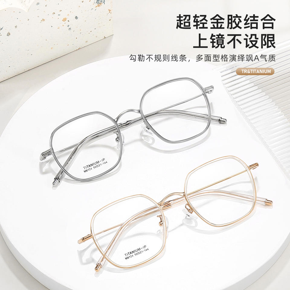 กรอบแว่นตาไทเทเนียม IP ทรงสี่เหลี่ยมเต็มกรอบ น้ำหนักเบา สำหรับทุกเพศ รุ่น MB124 5021-144 ผลิตที่ตานหยาง