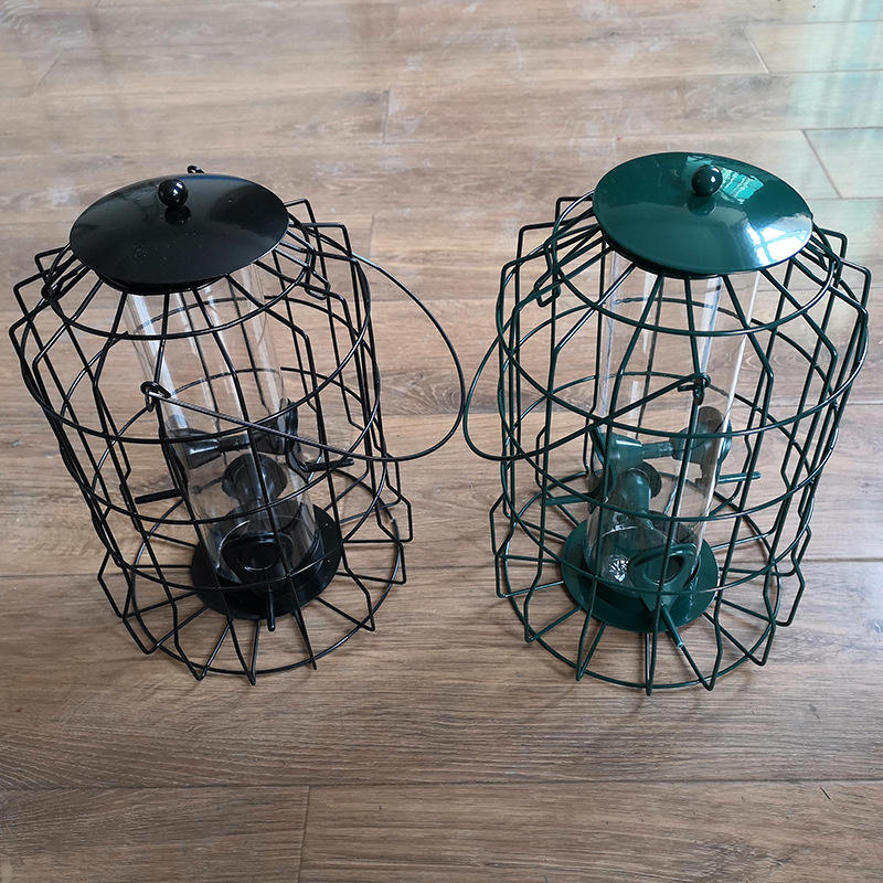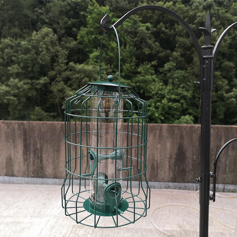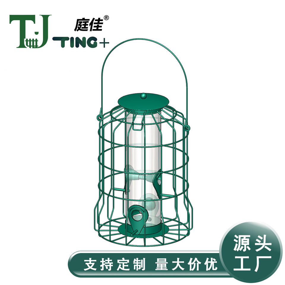 ที่ให้อาหารนกโลหะ TJ-005 แบบกลม ขนาดเล็ก ทนทาน สำหรับแขวนกลางแจ้ง ป้องกันการกัดแทะโดยกระรอก