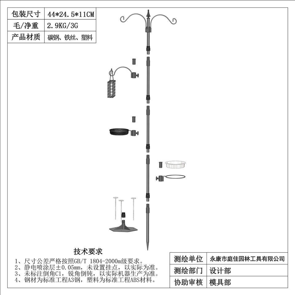 ที่ให้อาหารนกโลหะ TJ-020 ขนาด 1.9 เมตร แบบติดตั้งบนพื้นดิน ทนทาน ใช้กลางแจ้ง พร้อมที่ให้น้ำ และที่แขวนในสวน พร้อมขายึด