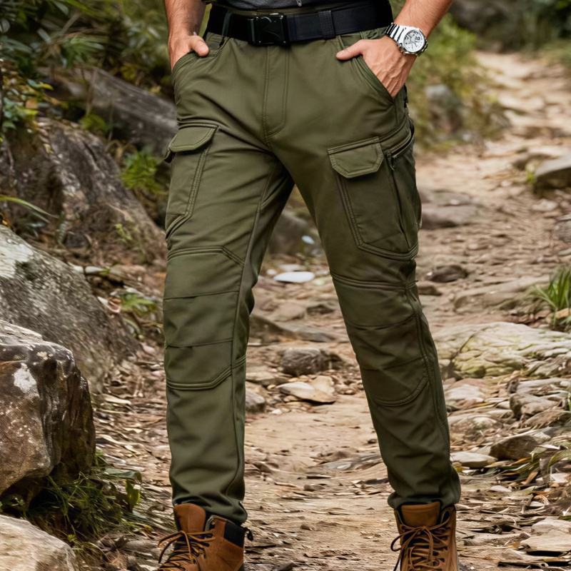 TKAN171D กางเกงวอร์มผู้ชายกันน้ำเอวกลางหลายกระเป๋าผ้าฟลีซยืดหยุ่นลำลองอบอุ่น