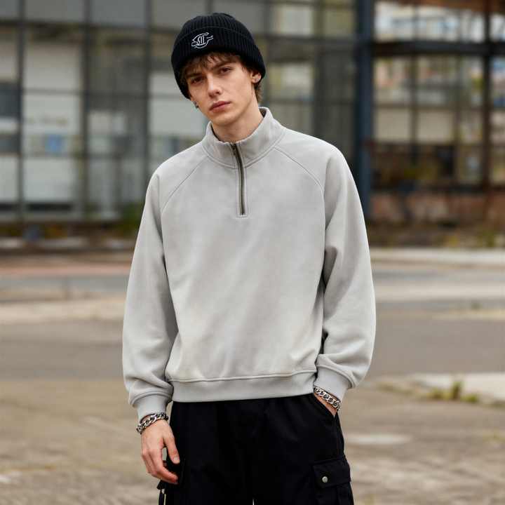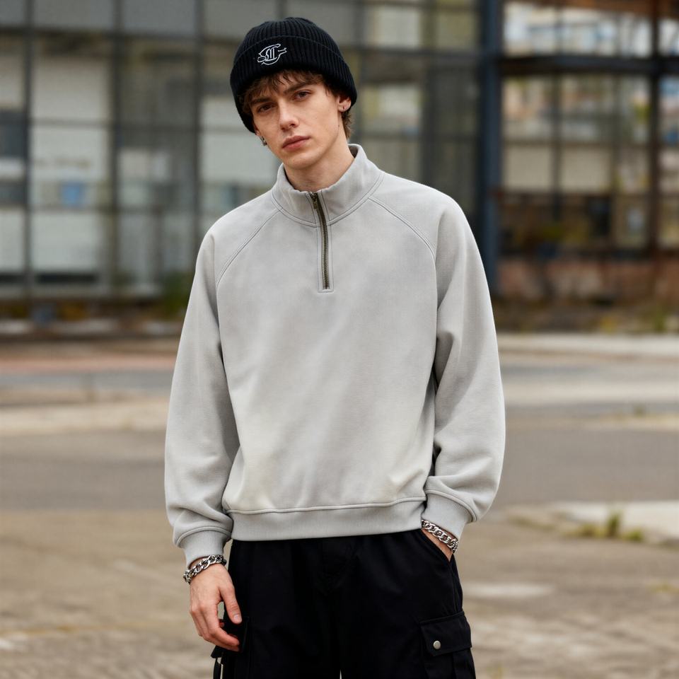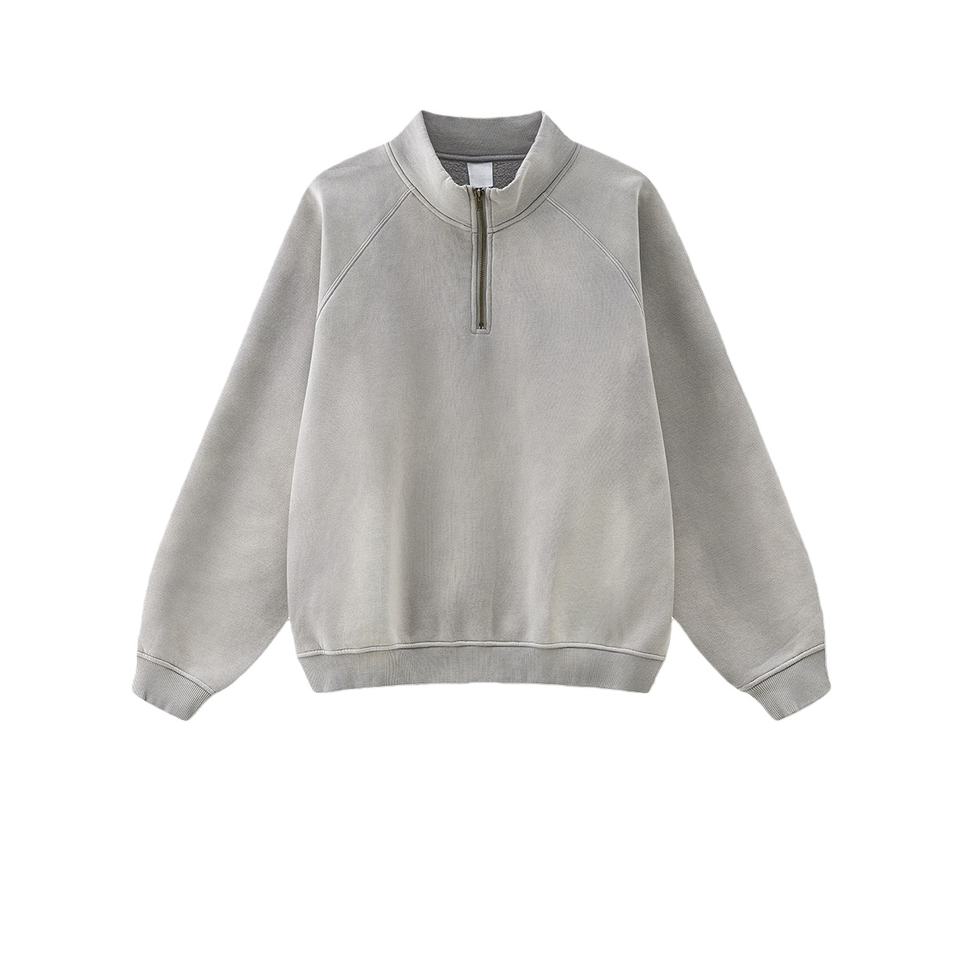 เสื้อผ้าผู้ชาย TKAN353D คุณภาพสูง ขายส่ง เสื้อวินเทจสีซีดแบบดิสเทรส ซิป 1/4 แบบสั่งทำพิเศษ ทรงโอเวอร์ไซส์ ผ้าฝ้ายลำลองสำหรับฤดูหนาว ปักลาย