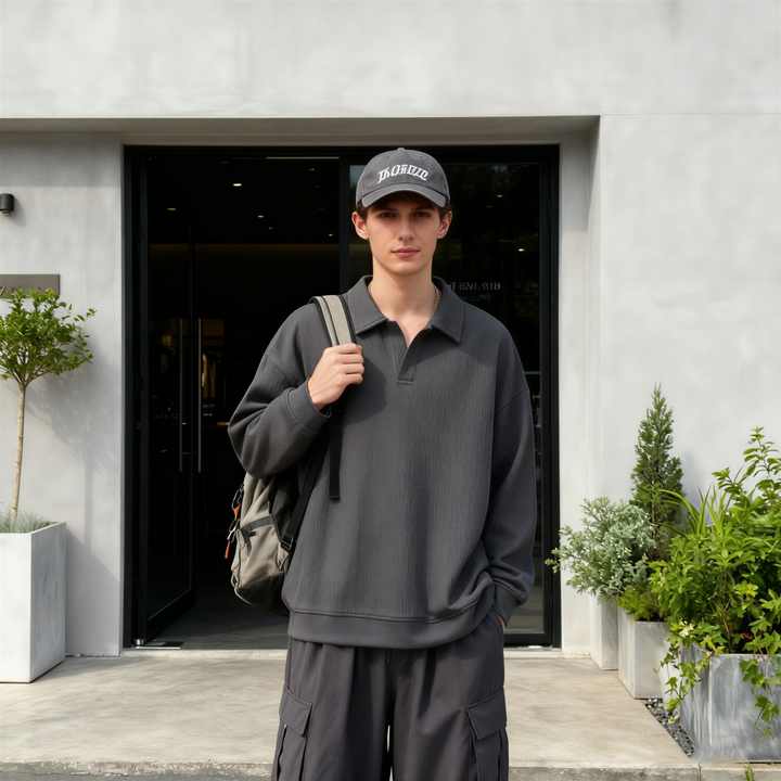 TKAN422D สเวตเชิ้ตคอโปโลสีพื้นของผู้ชายทรงหลวมขนาดพิเศษพิมพ์ลายสกรีนผ้าไหมแบบกำหนดเองฤดูใบไม้ร่วง