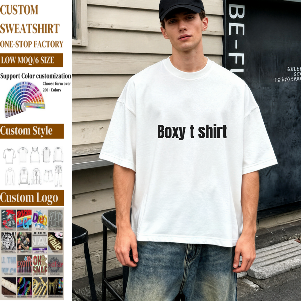 เสื้อยืดผู้ชาย TKAN435 แบบสั่งทำ ผ้าฝ้าย 100% เนื้อหนา พิมพ์โลโก้ตามสั่ง ไซส์อเมริกา ขายส่ง เสื้อยืดทรงบ็อกซี่โอเวอร์ไซส์สำหรับผู้ชาย