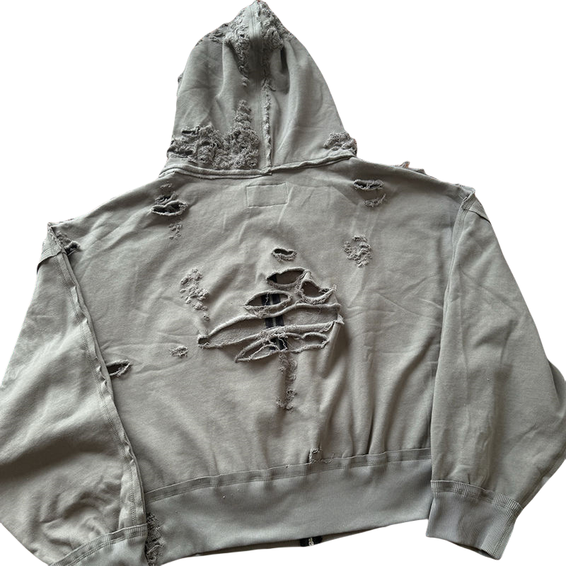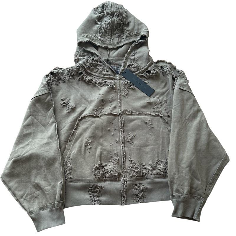 เสื้อฮู้ดดี้แฟชั่น TKAN531 ทรงโอเวอร์ไซส์ ทรงบ็อกซี่ แต่งขาด ซิปหน้า เสื้อฮู้ดดี้ผู้ชาย สั่งทำได้ ผ้าฝ้าย 100% ลุควินเทจ ซักแบบวินเทจ สำหรับสตรีทแวร์