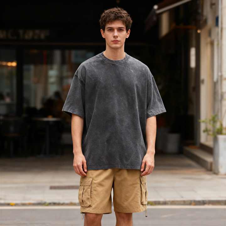เสื้อยืดโอเวอร์ไซส์ลายกราฟิกสตรีทแวร์ TKAN587D พิมพ์ลายตามสั่ง เสื้อผ้าผู้ชายแบบเปล่า ล้างสีแบบแอซิดวอช ผ้าฝ้าย 100% เนื้อหนา