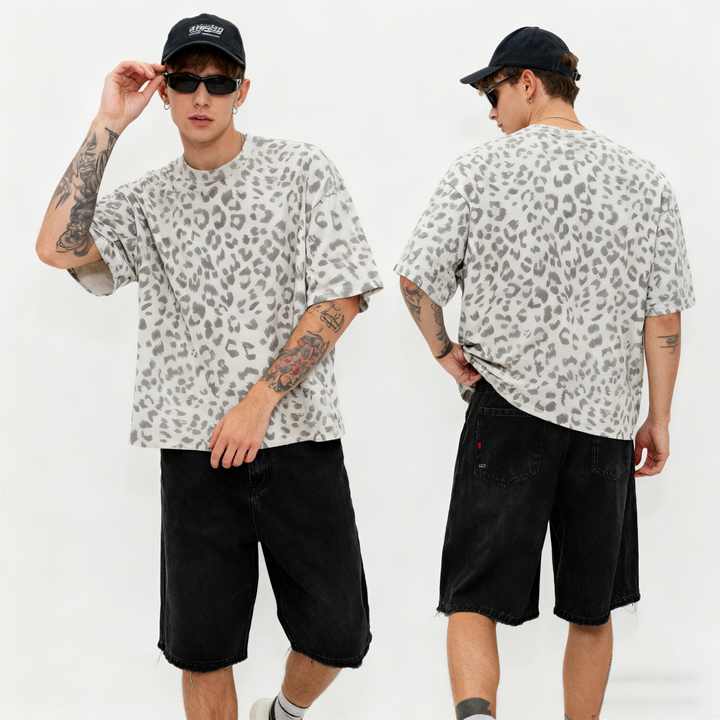 เสื้อยืดผู้ชาย TKAN645D OEM/ODM พิมพ์ลายโลโก้กราฟิกตามสั่ง ผ้าคอตตอน 100% หนานุ่ม สไตล์ฮิปฮอป ลายเสือดาว วินเทจ ซักหิน