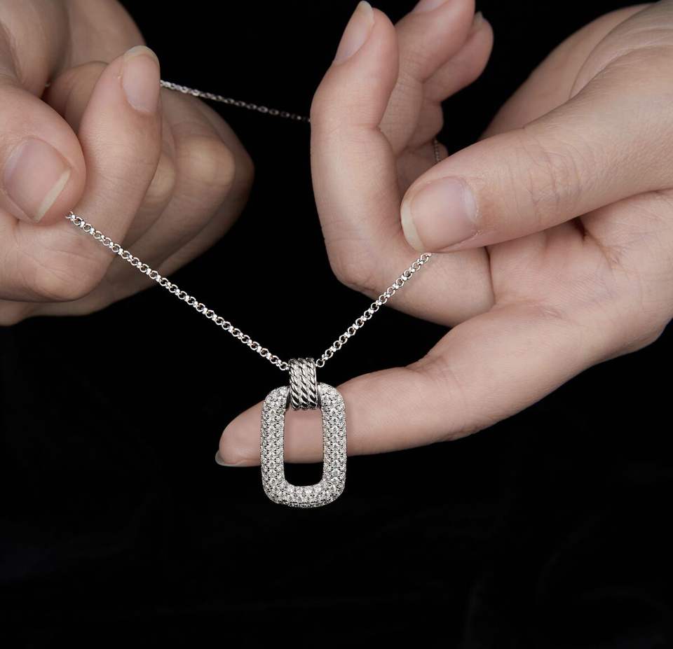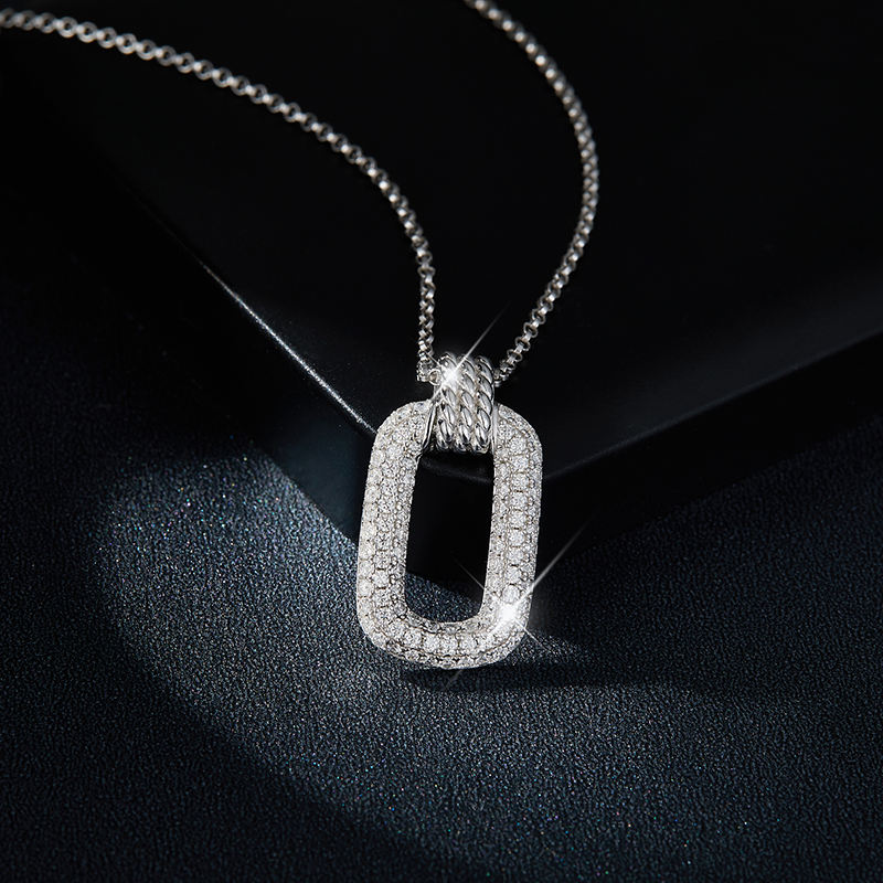 สร้อยคอผู้ชาย TKHiphop ประดับโมอิสซาไนต์พร้อมจี้หินสีเงิน