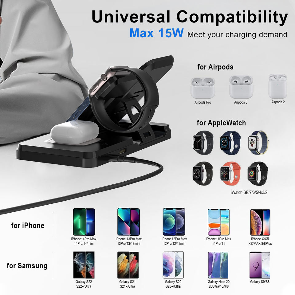 ทั้งหมดในที่เดียว, ไร้สาย, ปรับได้, มัลติฟังก์ชั่น, 3 In 1 Wireless Charging Station