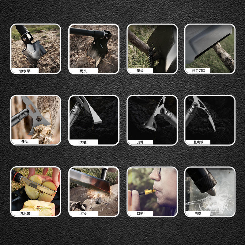 ชุดพลั่วอเนกประสงค์ TL1 อลูมิเนียมอัลลอยด์ ชุดเครื่องมือฉุกเฉินกลางแจ้งขนาดกะทัดรัด พร้อมขวาน มีด ไฟฉาย และชุดปฐมพยาบาล