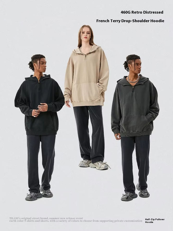 เสื้อฮู้ดผู้ชาย TL460 ผ้าฝ้าย 100% สำหรับฤดูใบไม้ร่วงและฤดูหนาว น้ำหนัก 460 กรัม ผ้าเทอร์รี่ แต่งขอบซิป ดีไซน์หลวม ลายเรียบ