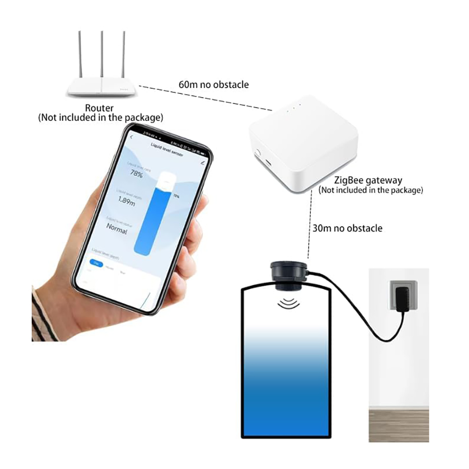 TLC2206-ZB สมาร์ทโฮม Tuya เซ็นเซอร์วัดระดับถังน้ำในครัวเรือนแบบไร้สัมผัส ระยะสูงสุด 3 เมตร ระบบ Zigbee อัลตราโซนิก