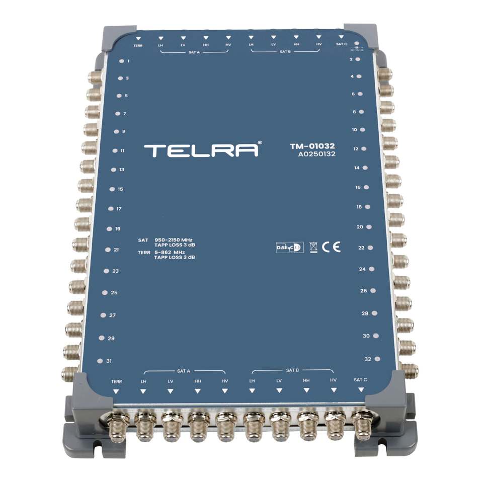 ระบบมัลติสวิตช์ดาวเทียมประสิทธิภาพสูง ลดการสูญเสียสัญญาณ 2 SAT ระบบ 10 เข้า 32 ออก รุ่น Telra-TM-1032