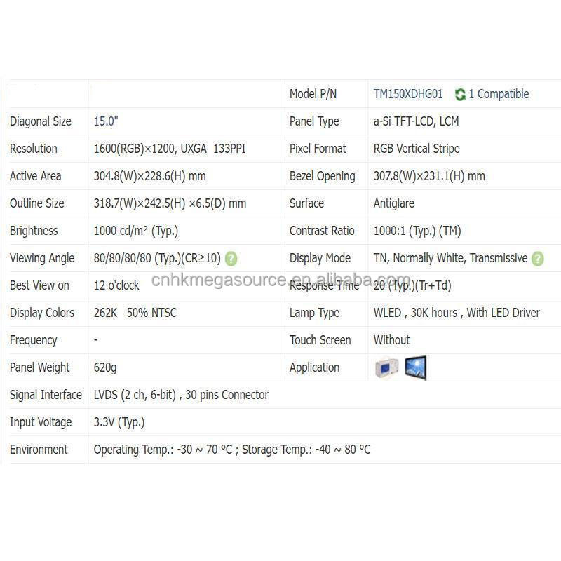 TM150XDHG01ใหม่15นิ้ว1600*1200 TM150XDHG01แสดงผล LCD
