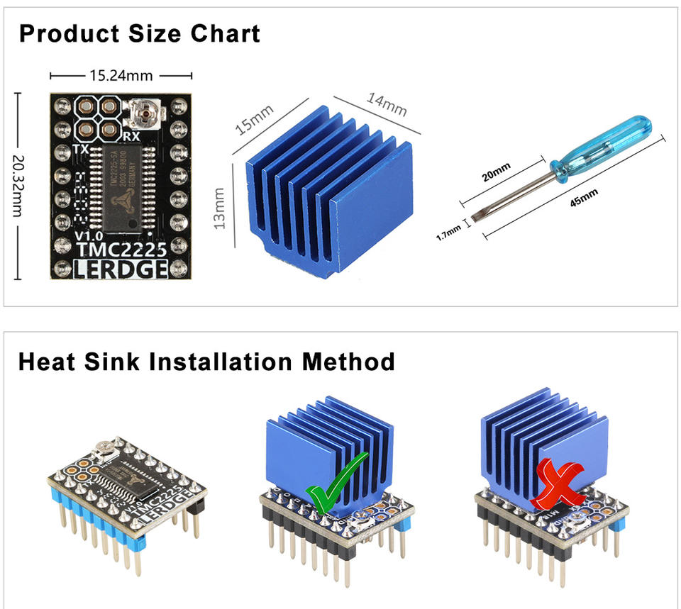 TMC2225 ไดรเวอร์มอเตอร์สเต็ปเปอร์แบบไมโครสเต็ป 256 ขั้นตอน รองรับการเชื่อมต่อผ่าน UART เทียบกับ TMC2209 TMC2208 TMC2130 A4988 DRV8825 StepStick V1.0 อะไหล่เครื่องพิมพ์ 3 มิติ