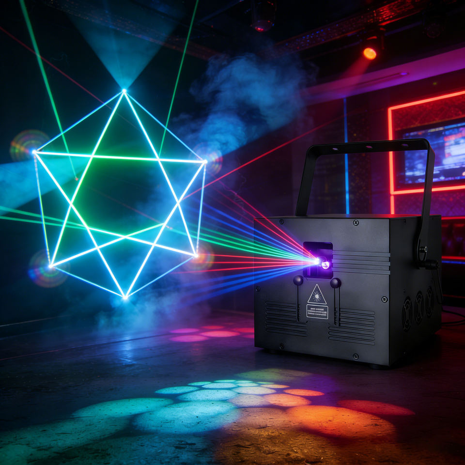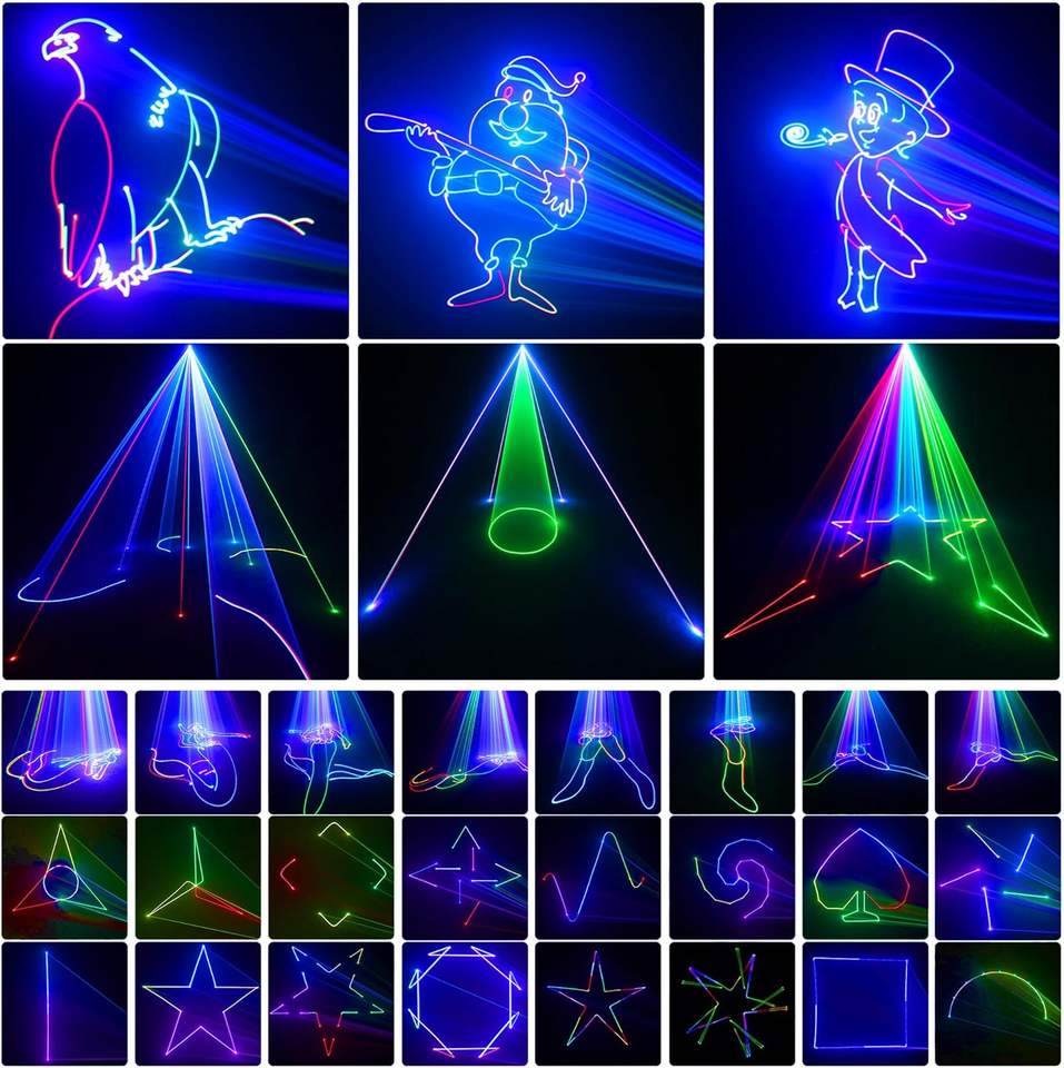 โปรเจคเตอร์เลเซอร์ RGB กลางแจ้ง TMUT 15W ควบคุมผ่านบลูทูธ แอพพลิเคชั่น และ DMX สำหรับงานแต่งงาน ปาร์ตี้ ดิสโก้ และงานอีเว้นท์ขนาดใหญ่