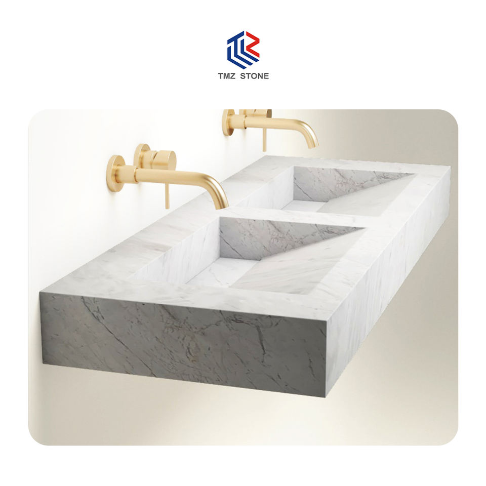 TMZ marmol แผ่นหินอ่อนสีขาวเอลบาธรรมชาติขัดเงาพร้อมดีไซน์ทันสมัยอ่างล้างจานลายกราฟิกกันน้ำ