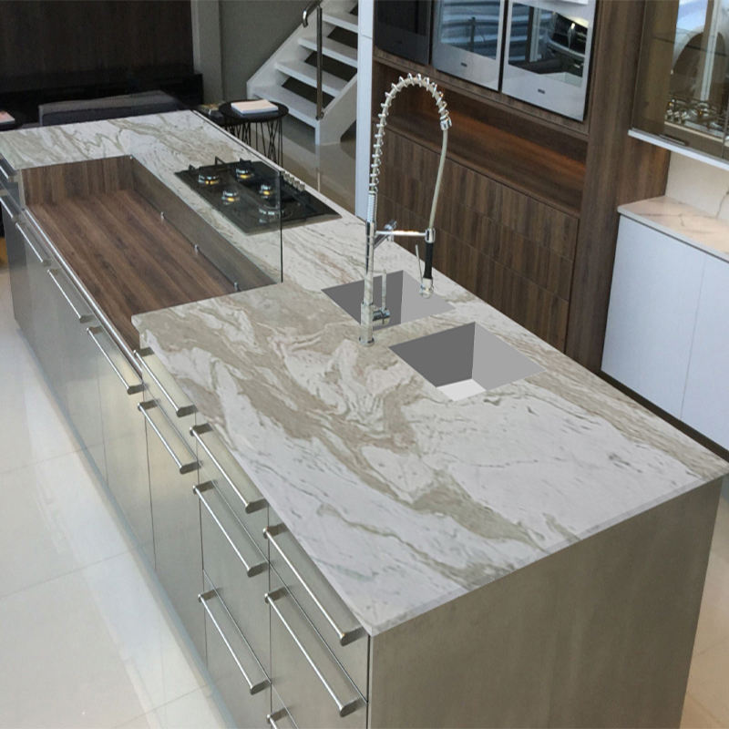 500 เอเคอร์ ต่อ Month Calacatta Laza ควอตซ์หินขัดเคาน์เตอร์ครัว