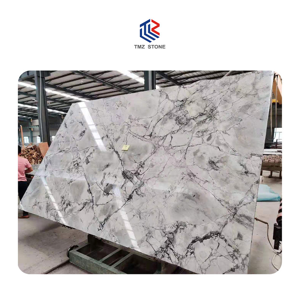 Tmz Quartzito แผ่นควอตซ์สีขาวแบบทันสมัยสำหรับตกแต่งโรงแรมและวิลล่า