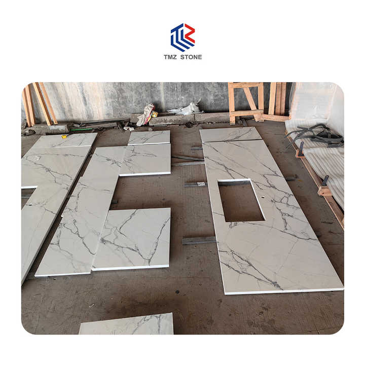 เคาน์เตอร์ควอตซ์กันน้ำ TMZ ODM รุ่น 5107 Paonazzo Verona Calacatta ดีไซน์ทันสมัย หินสังเคราะห์ สำหรับโรงแรม ห้องครัว และภายนอกอาคาร