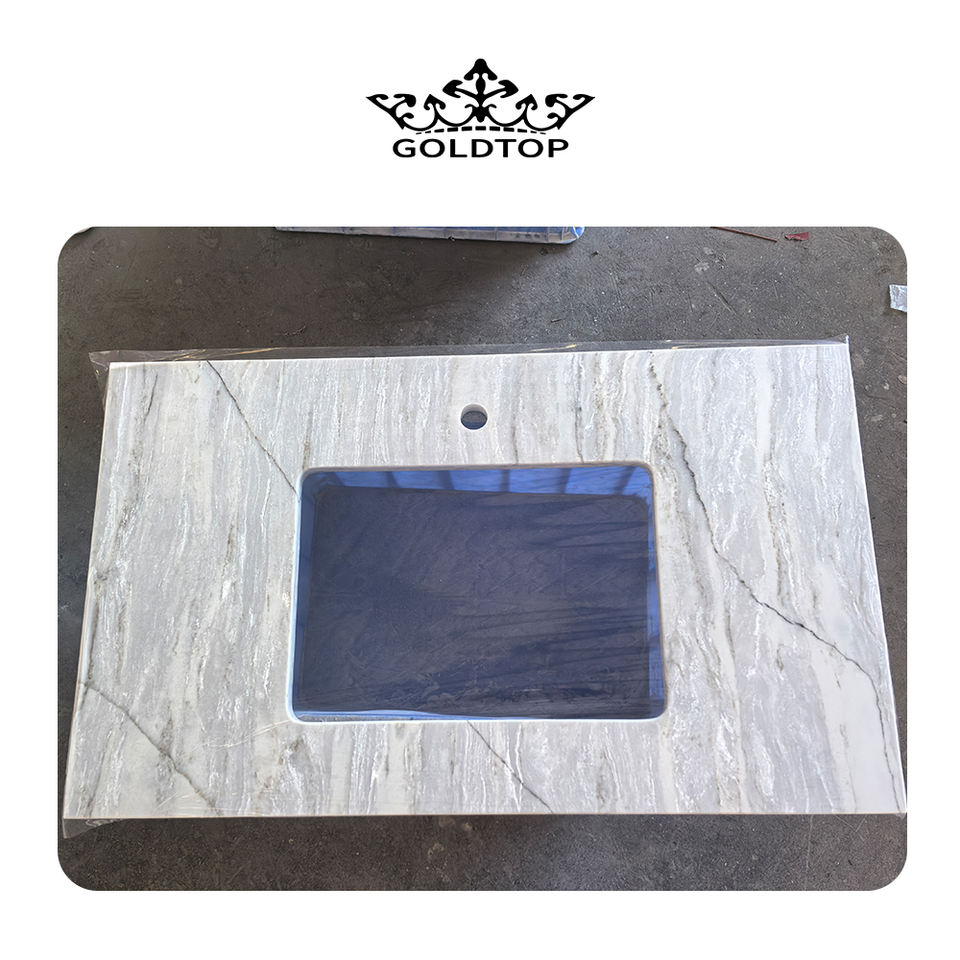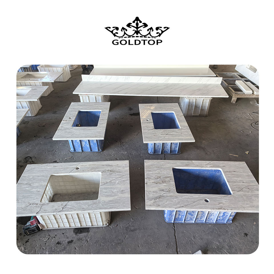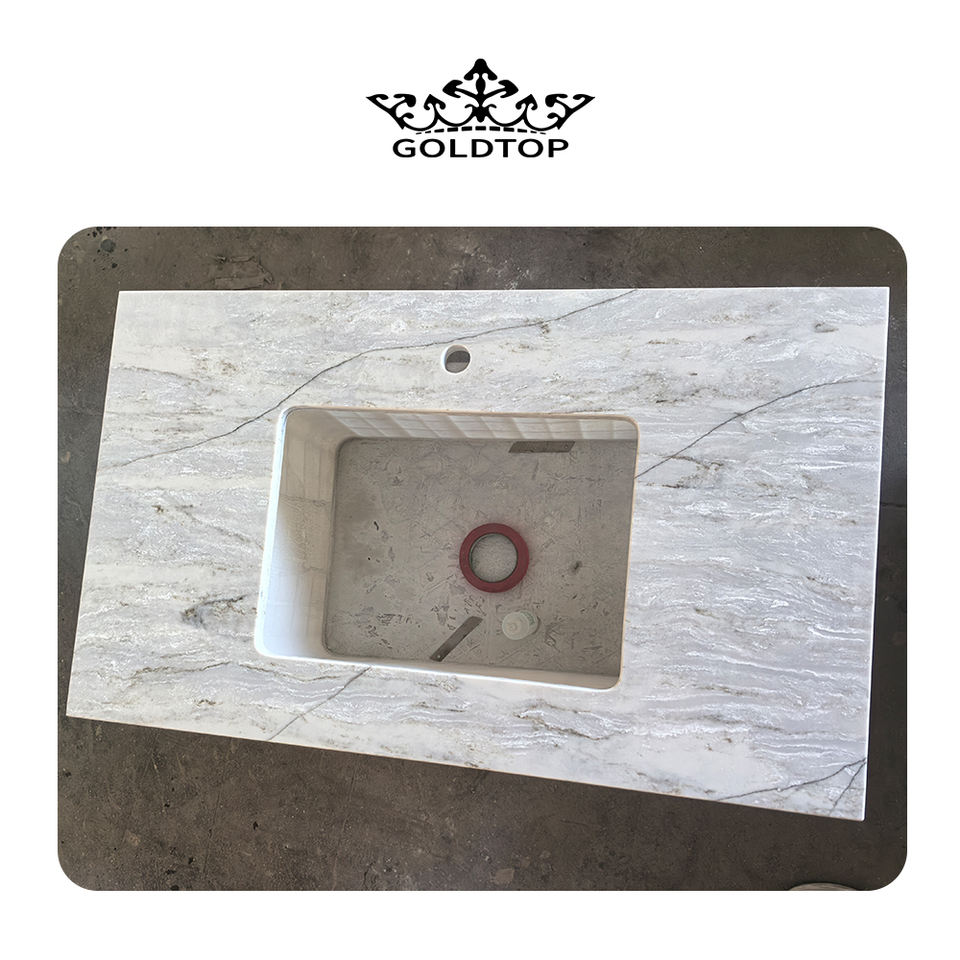 โกลด์ท็อป โฮลเซล 6037 แผ่นควอตซ์เทียมรุ่นมาเทอร์ฮอร์นสำหรับใช้ในโรงแรม ปรับแต่งขนาดและความหนาได้