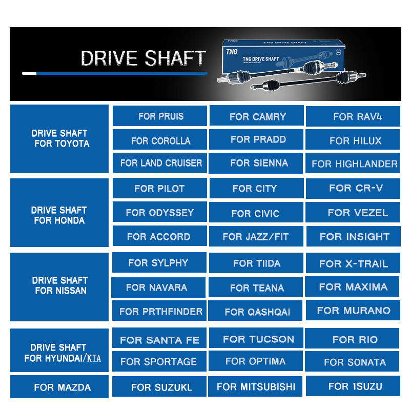 TNG เพลารถเพลาหน้าด้านขวาสำหรับ Toyota Corolla altis ZRE173 2013-2019 43410-02A80