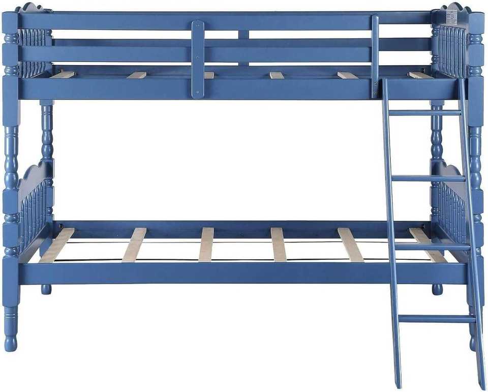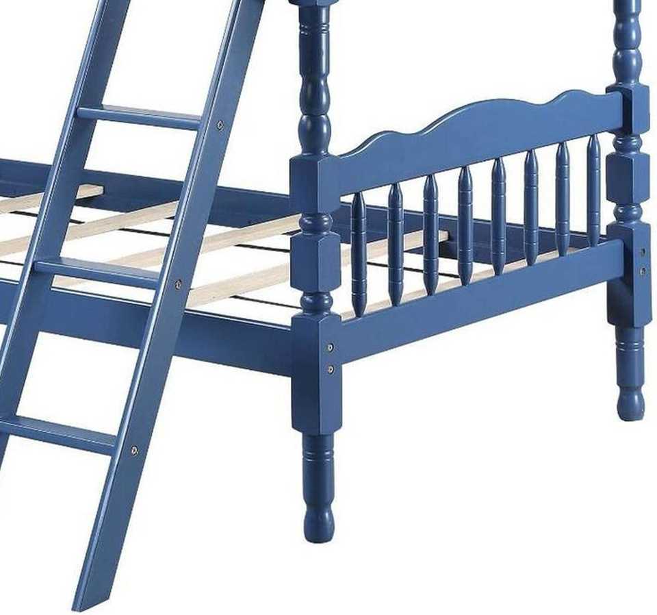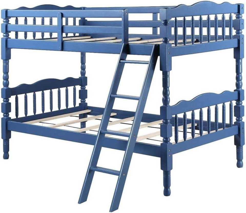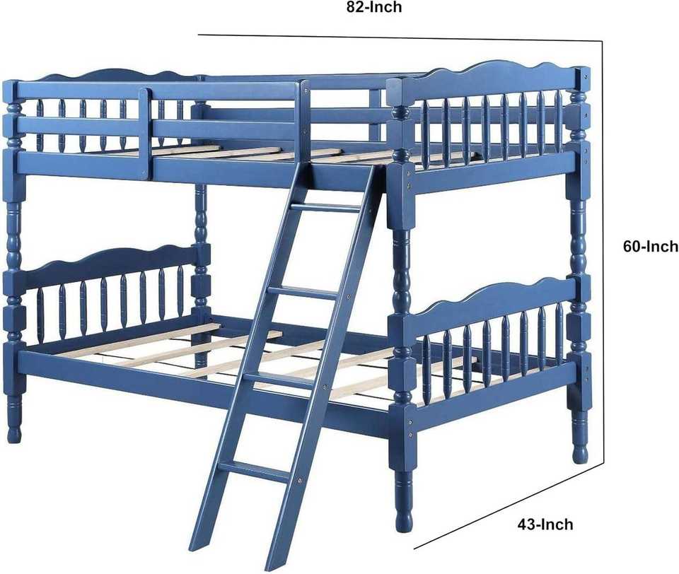 เตียงสองชั้นไม้สนแกะสลักสไตล์คลาสสิก TNT แข็งแรงทนทาน พร้อมบันไดและราวกั้น ดีไซน์แบบดั้งเดิม ขาสีน้ำเงิน บินห์ดูง