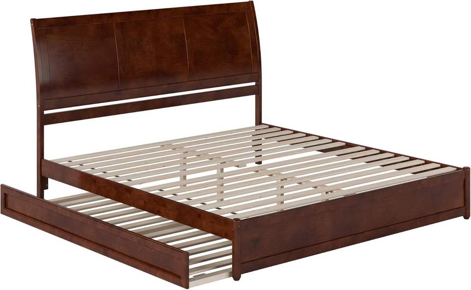 เตียงนอนแบบมีล้อเลื่อนขนาด Twin XL รุ่น TNT Traditional Style พร้อมแผงไม้วอลนัท ผลิตด้วยมือจากไม้เขตร้อนเอเชีย แข็งแรงทนทาน พร้อมที่วางเท้า