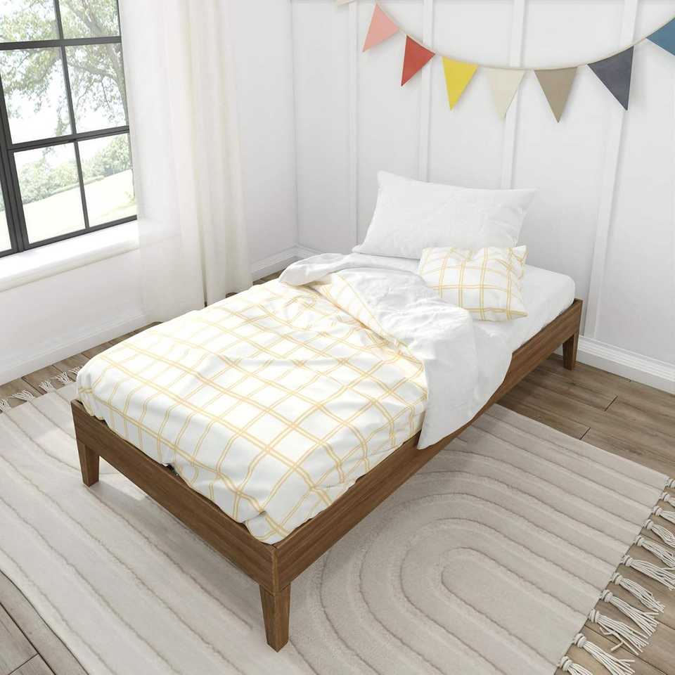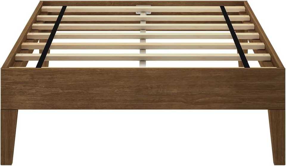 TNT Twin Platform Bed Frame – Solid Pine Wood with Strong Wooden Slats, Non-Toxic Matte Walnut Finish