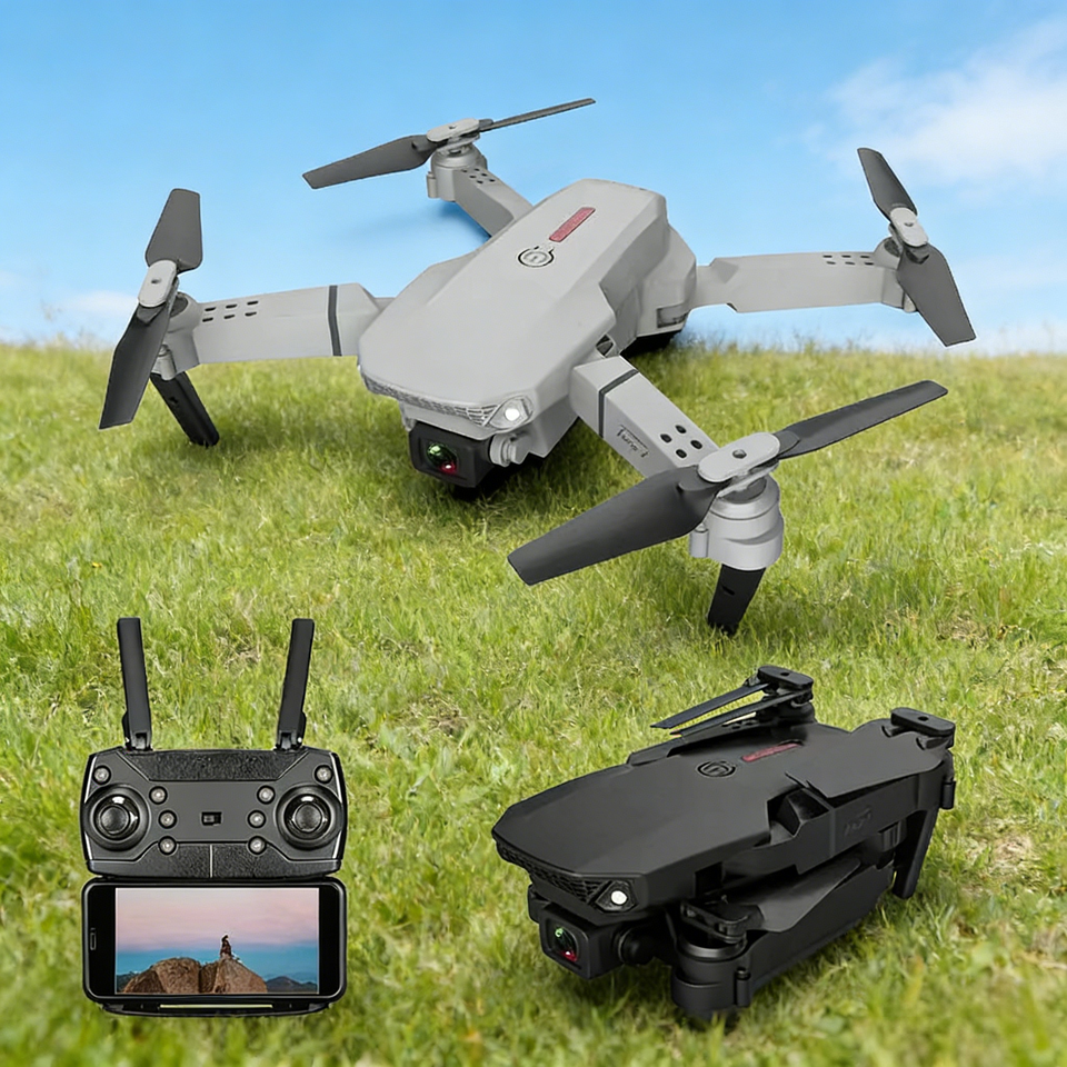 โดรน TOAI E88 GT สำหรับผู้เริ่มต้น กล้อง 4K หน้าจอควบคุมระยะไกล 2.4 นิ้ว ระยะส่งสัญญาณ 1 กม. หมุนได้ 360 องศา มอเตอร์แบบไร้แปรงถ่าน กล้องพลาสติก