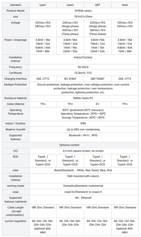 Standard:IEC 62196-2 GB/T 18487 SAE j1772
