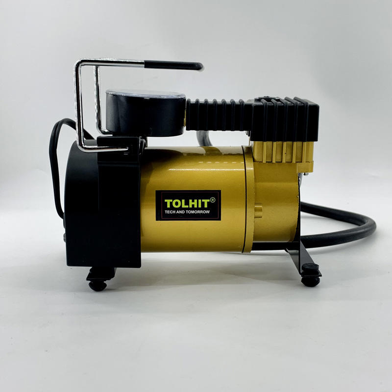 Tolhit เครื่องมือซ่อมยางรถฉุกเฉินปั๊มอัดอากาศแบบพกพาปั๊มเติมลมยางสำหรับรถยนต์มอเตอร์ทองแดง DC 12V ขนาดเล็ก