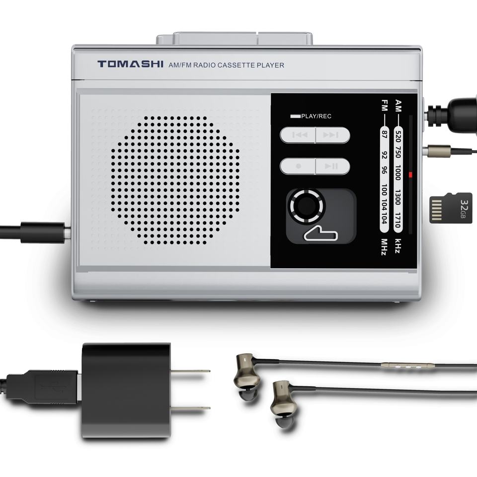 เครื่องบันทึกเสียงแบบพกพา TOMASHI F-315A สีเงิน รุ่นวินเทจ พร้อมฟังก์ชั่นแปลง MP3 รองรับการ์ด SD สไตล์วอล์คแมน